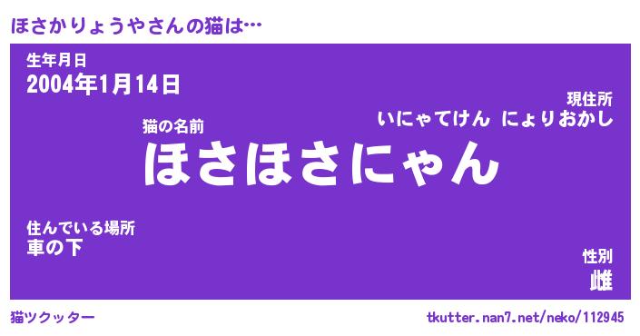 | ツイッター | ほさかりょうやさんのツイッターID『dendenmushi_nyan』 |