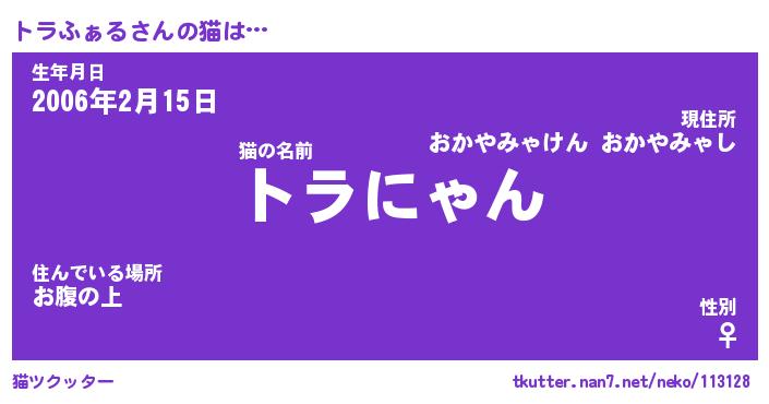 | ポケモン風あだ名 | 『トラチュウ』『トラフダネ』 |