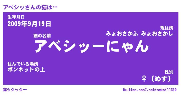 | 意味不明あだ名 | 『ペロリンアベシッ』『永久保存アベシッ』 |