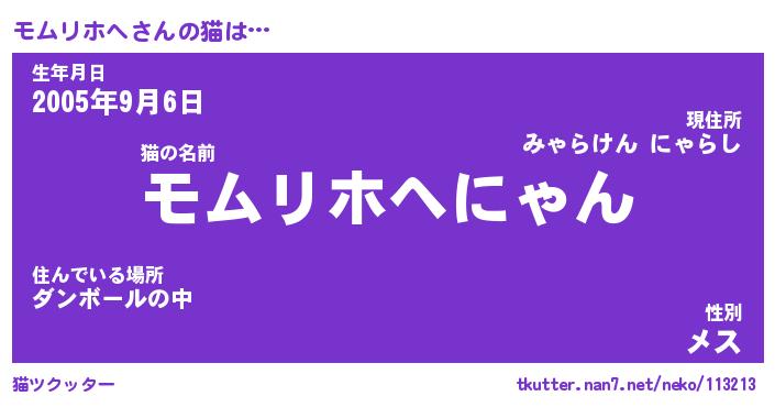 | 男性向けラノベタイトル風あだ名 | 『モムリホヘの憂鬱』 |