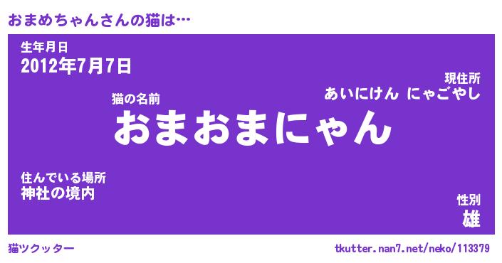 | ポケモン風あだ名 | 『オマチュウ』『オマメダネ』 |