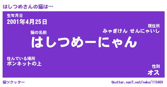 | 意味不明あだ名 | 『ペロリンはしつめ』『永久保存はしつめ』 |