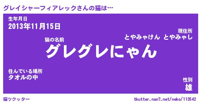 | ツイッター | グレイシャーフィアレックさんのツイッターID『dendenmushi_nyan』 |