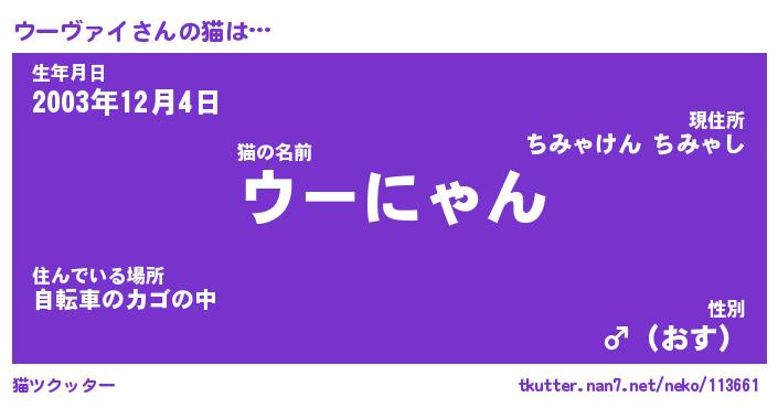 | ポケモン風あだ名 | 『ウーチュウ』『ウーヴダネ』 |