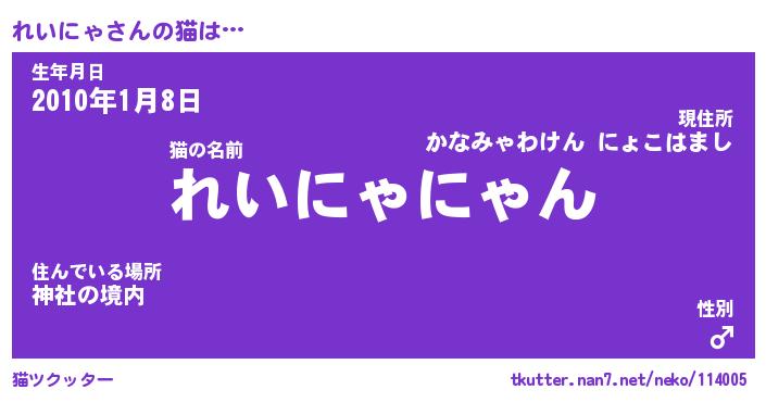 | 欧米人風あだ名 | 『マイケルれいにゃ』『ウサインれいにゃ』 |