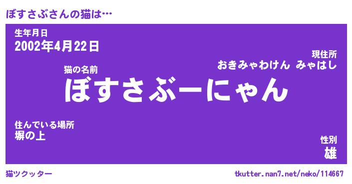 | 生年月日? …「くろねこ」 | 8月01日 10:16 |
