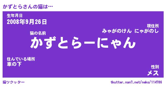 | 意味不明あだ名 | 『ペロリンかずとら』『永久保存かずとら』 |