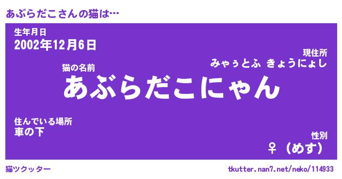 | 男性向けラノベタイトル風あだ名 | 『あぶらだこの憂鬱』 |