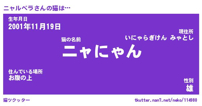| ヒーロー風カッコイイあだ名 | 『スーパーニャルベラ』『幻影騎士ニャ』 |