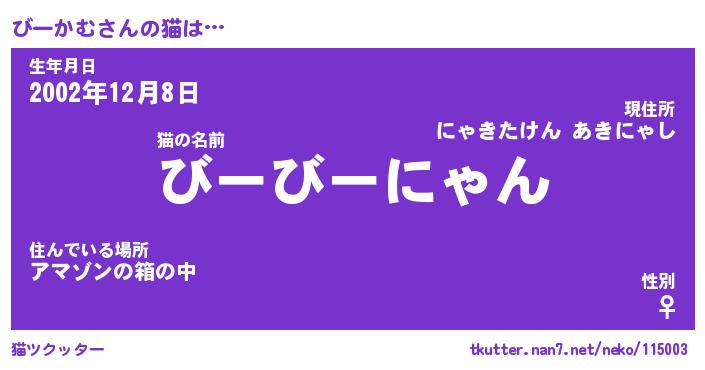 | 2回繰り返すあだ名 | 『びーびー』『びびーー』『にたにた』 |