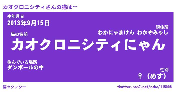 | 男性向けラノベタイトル風あだ名 | 『カオクロニシティの憂鬱』 |