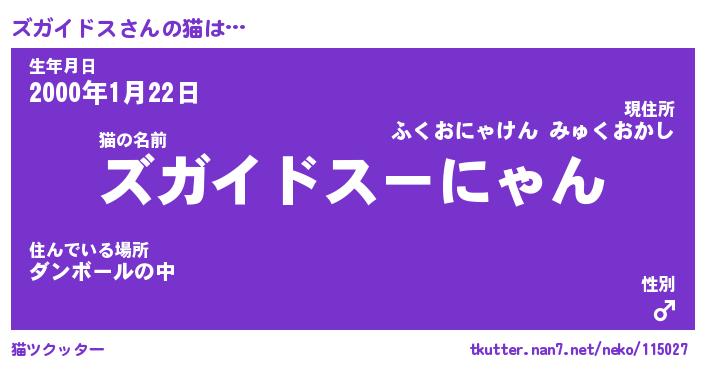 | 自動車の名前っぽいあだ名 | 『ズガティマ』『ズクア』『ズント』 |