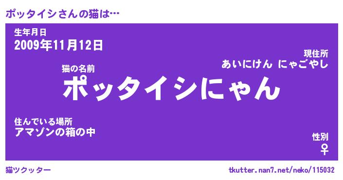 | 男性向けラノベタイトル風あだ名 | 『ポッタイシの憂鬱』 |