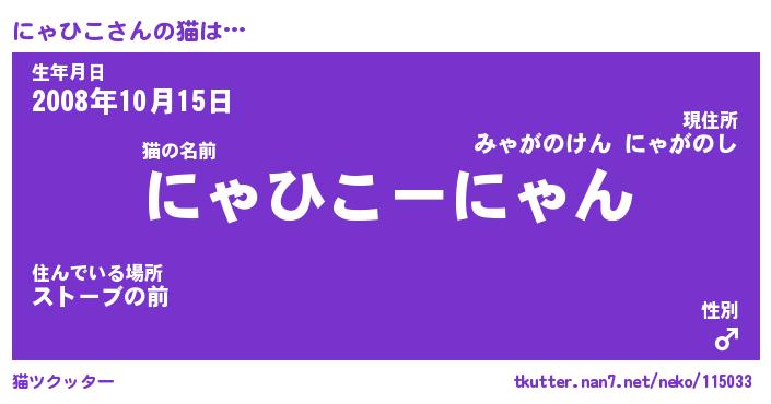 | ファンタジー風あだ名 | 『ニャフェル』『エターナルニャヒコー』 |