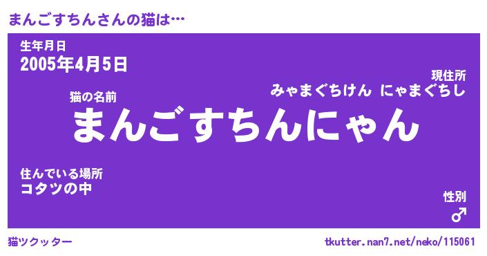 | ポケモン風あだ名 | 『マンチュウ』『マンゴダネ』 |