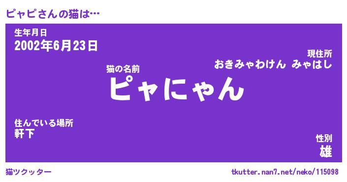 | ポケモン風あだ名 | 『ピャチュウ』『ピャピダネ』 |