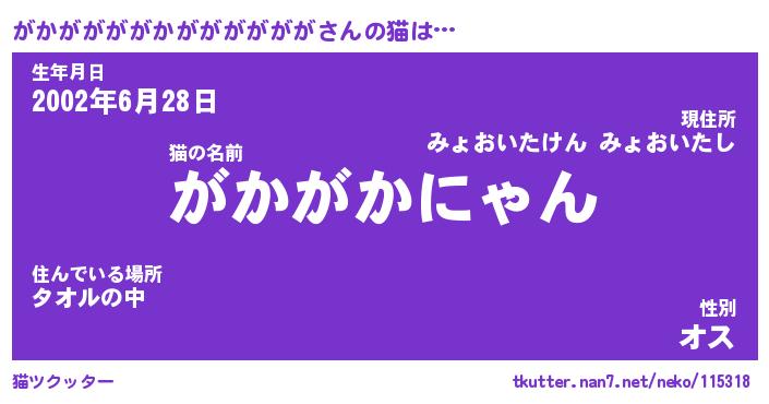 | 2回繰り返すあだ名 | 『がかがか』『ががかか』『ぎとぎと』 |