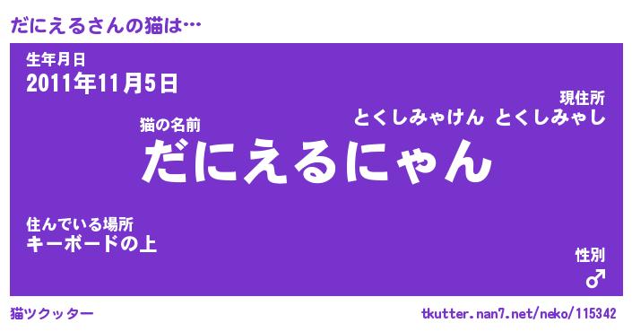 | 意味不明あだ名 | 『ペロリンだにえる』『永久保存だにえる』 |