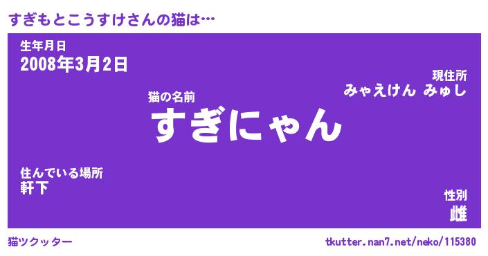 | 2回繰り返すあだ名 | 『すぎすぎ』『すすぎぎ』『にぎにぎ』 |