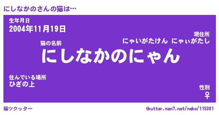 | ヘコむあだ名 | 『にしにー』『豆乳』『にしっ子』 |