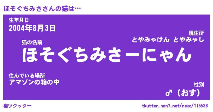 | 肩書あだ名 | 『ほそぐちみさ御曹司』 |