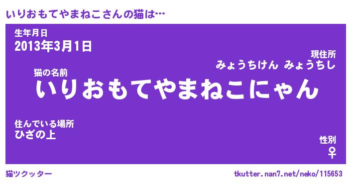 | 男性向けラノベタイトル風あだ名 | 『いりおもてやまねこの憂鬱』 |