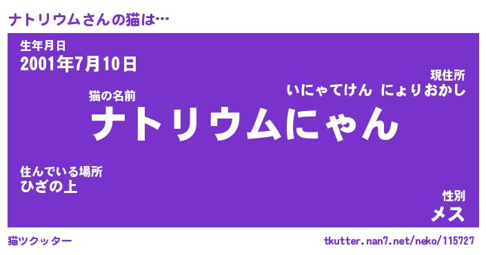 | ファンタジー風あだ名 | 『ナトフェル』『エターナルナトリウムー』 |