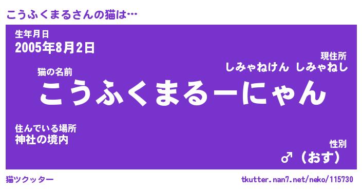| ツイッター | こうふくまるさんのツイッターID『namakemono_kun』 |