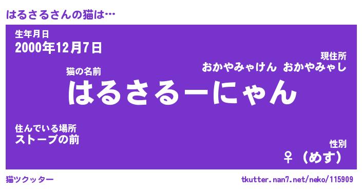 | 2回繰り返すあだ名 | 『はるはる』『ははるる』『うねうね』 |