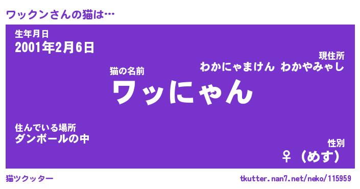 | 男性向けラノベタイトル風あだ名 | 『ワックンの憂鬱』 |