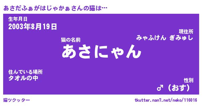 | 生年月日? …「くろねこ」 | 8月01日 10:16 |