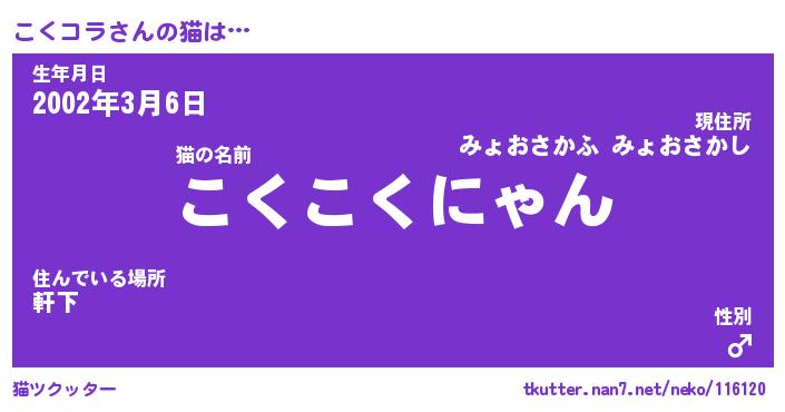| ツイッター | こくコラさんのツイッターID『katatsumuri_nyan』 |