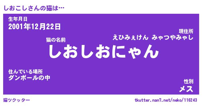 | 生年月日? …「くろねこ」 | 8月01日 10:16 |