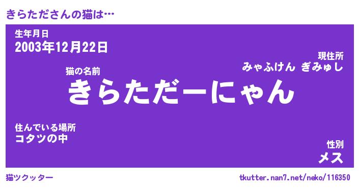 | 意味不明あだ名 | 『ペロリンきらただ』『永久保存きらただ』 |