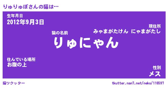 | 男性向けラノベタイトル風あだ名 | 『りゅりゅぼの憂鬱』 |