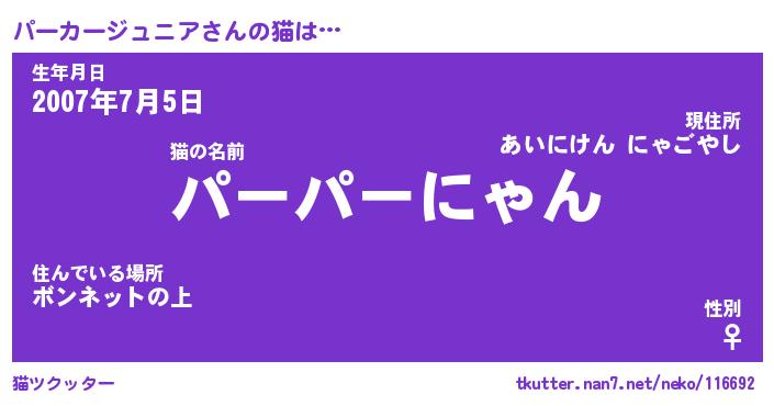 | ツイッター | パーカージュニアさんのツイッターID『katatsumuri_man』 |