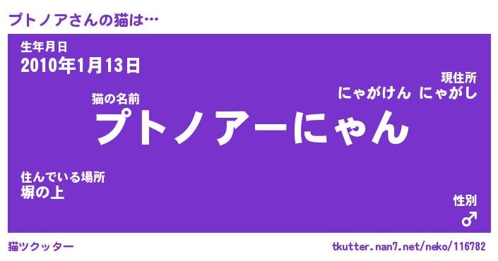 | 意味不明あだ名 | 『ペロリンプトノア』『永久保存プトノア』 |