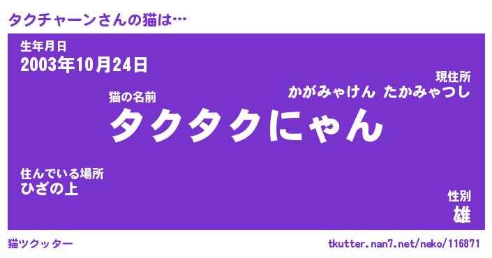 | ポケモン風あだ名 | 『タクチュウ』『タクチダネ』 |