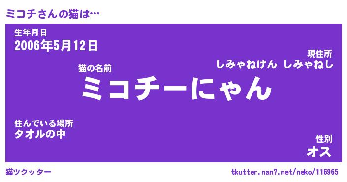 | 意味不明あだ名 | 『ペロリンミコチ』『ミコチフォーエバー』 |