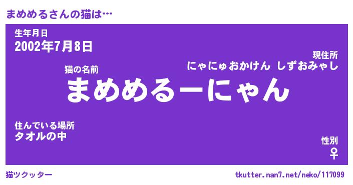 | 意味不明あだ名 | 『ペロリンまめめる』『永久保存まめめる』 |