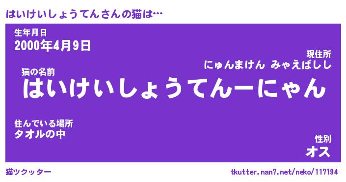 | ツイッター | はいけいしょうてんさんのツイッターID『fukuyoka_nyan』 |