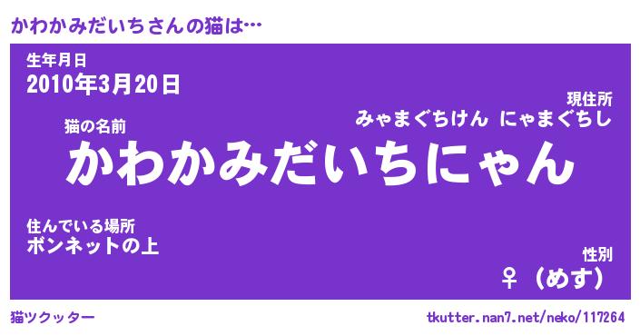 | 肩書あだ名 | 『かわかみだいち御曹司』 |