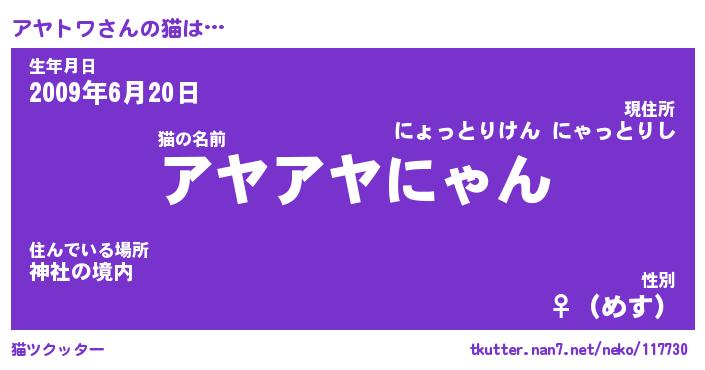 | 意味不明あだ名 | 『ペロリンアヤトワ』『永久保存アヤトワ』 |