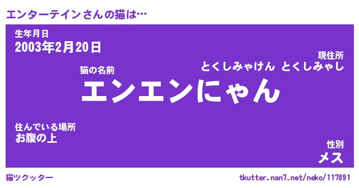 | ポケモン風あだ名 | 『エンチュウ』『エンタダネ』 |