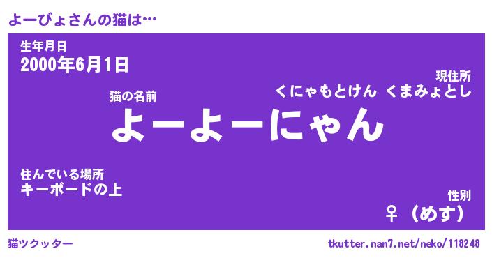 | 意味不明あだ名 | 『ペロリンよーびょ』『永久保存よーびょ』 |