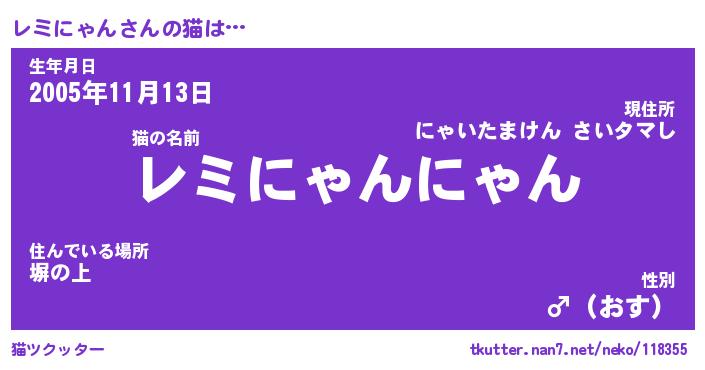 | 男性向けラノベタイトル風あだ名 | 『レミにゃんの憂鬱』 |