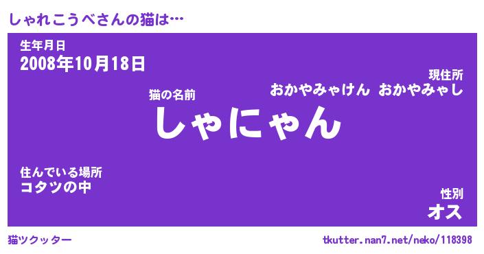 | 2回繰り返すあだ名 | 『しゃしゃ』『ししゃゃ』 |
