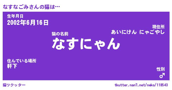| ポケモン風あだ名 | 『ナスチュウ』『ナスナダネ』 |