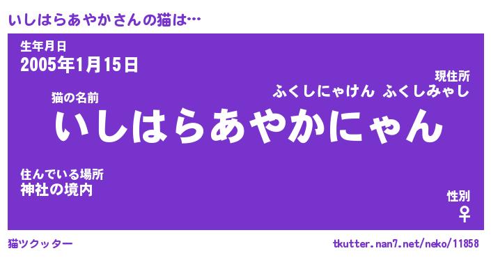 | 男性向けラノベタイトル風あだ名 | 『いしはらあやかの憂鬱』 |