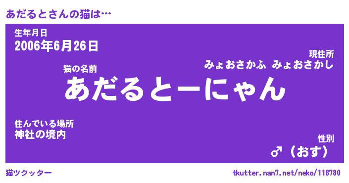 | ポケモン風あだ名 | 『アダチュウ』『アダルダネ』 |